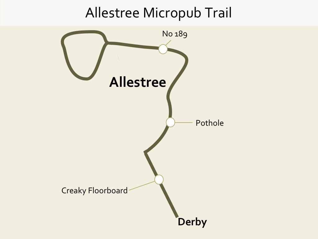 If the idea of a smaller micropub trail is more of your preference then the Derby suburb of Allestree may just provide that for you. This affluent city suburb was previously described as an ‘ale desert’ i.e. there was not much choice for real ale drinkers.